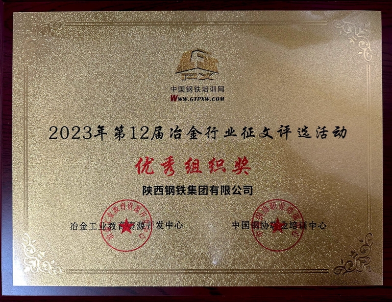近日,由冶金工業(yè)教育資源開發(fā)中心、中國鋼協(xié)職業(yè)培訓中心舉辦的第12屆冶金行業(yè)論文評選活動和第12屆鋼鐵行業(yè)職工培訓和職業(yè)教育優(yōu)秀多媒體課件大賽評選結(jié)果揭曉。陜鋼集團榮獲2023年第12屆冶金行業(yè)征文評選活動優(yōu)秀組織獎。陜鋼集團、龍鋼公司分別榮獲2023年第12屆鋼鐵行業(yè)多媒體課件評選活動優(yōu)秀組織獎。同時陜鋼集團共有55篇個人征文獲獎,其中一等獎1個,二等獎7個,三等獎15個,優(yōu)秀獎32個。